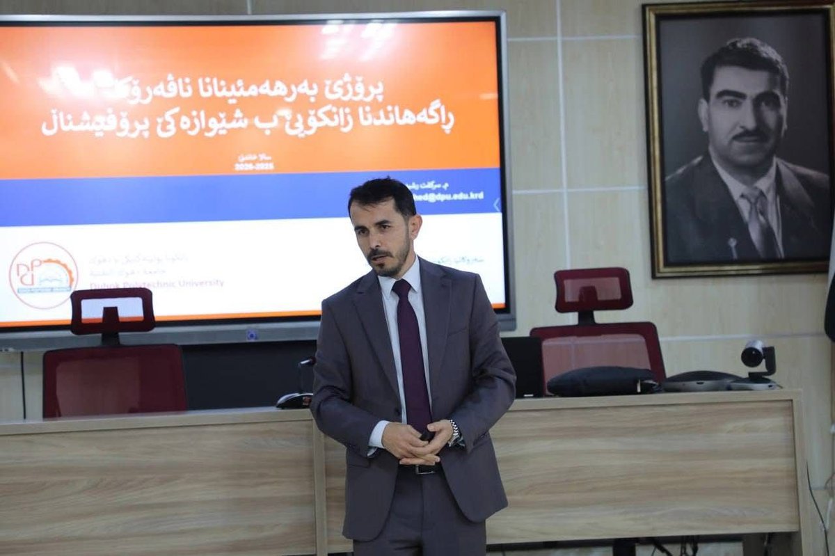 The first day was organized into two main sections: a theoretical session and a practical session. Several key topics were presented by Mr. Sarkft Rashid, Director of Media at Duhok Polytechnic University, including: