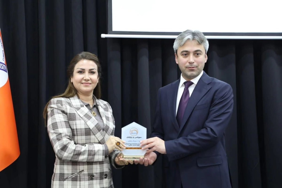 At the end of the workshop, the floor was opened for questions and discussions, and after the completion of the workshop activities, the University President expressed her gratitude and appreciation to the organizers of the event. Additionally, a Plaque of Appreciation and Respect was presented to the workshop guest, Dr. Zirek Zibari.