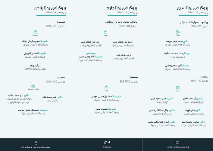 Technical Institute of Duhok will hold a cultural week under the supervision of Prof. Dr. Aree Adel, President of Duhok Polytechnic University and Dr. Araz Rajab, Dean of Technical Institute of Duhok.
