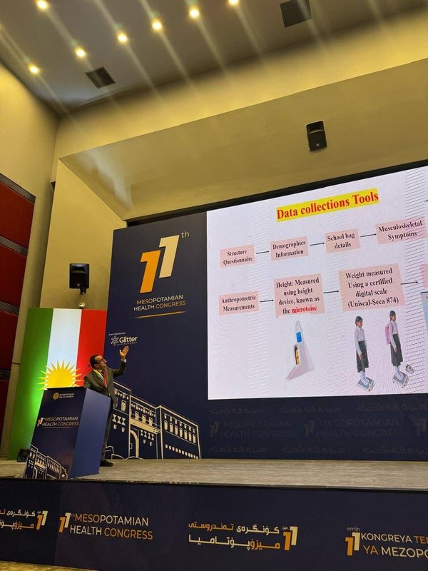 During this significant scientific event, a research study addressing health issues among students and presenting important scientific findings for safeguarding the health of future generations was presented by Asst. Prof. Dr. Masoud Abdulkarim Abdulrahman, a faculty member at Duhok Polytechnic University, under the title: