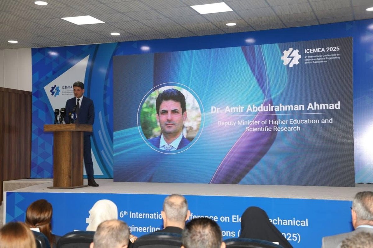 Under the auspices of the Ministry of Higher Education and Scientific Research in Iraq and the Kurdistan Region, and in the presence of representatives from both the Kurdistan regional government and the federal Government Ministries of Higher Education and Scientific Research along with several university presidents, their assistants, the Deputy Governor of Duhok, researchers, and professors from educational centers in the Kurdistan Region, Iraq, and eight other countries, the sixth International Conference on “Electrical and Mechanical Engineering and its Applications” (ICEMIA 2025) was held on Wednesday, October 29, 2025. The two-day conference was organized in cooperation with Duhok Polytechnic University, the University of Technology, the Northern Technical University, Al-Noor University, Al-Zahraa University, and Multaqa Al-Nahrain University College, and was held in the Azadi Hall of the Duhok Technical Institute.